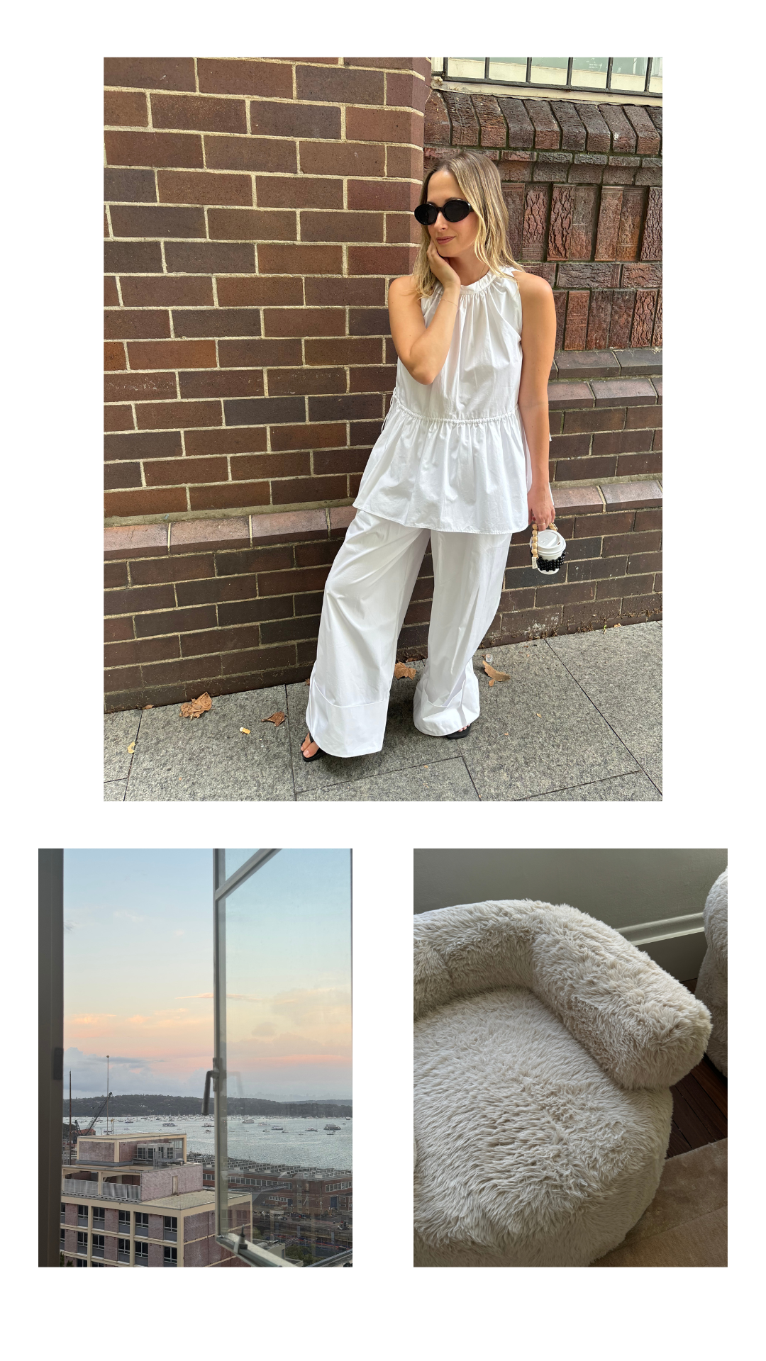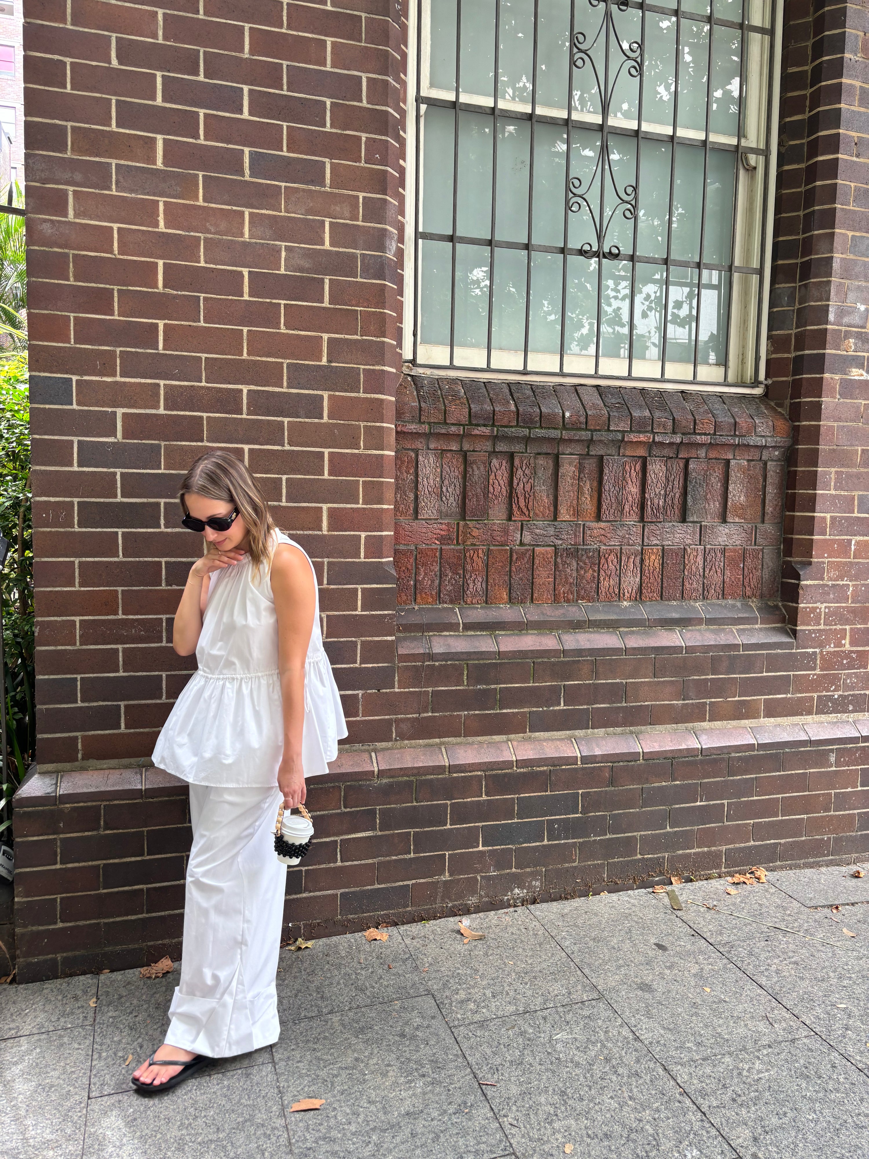 Dani wears the Kendall Top and the Skye Pant in White