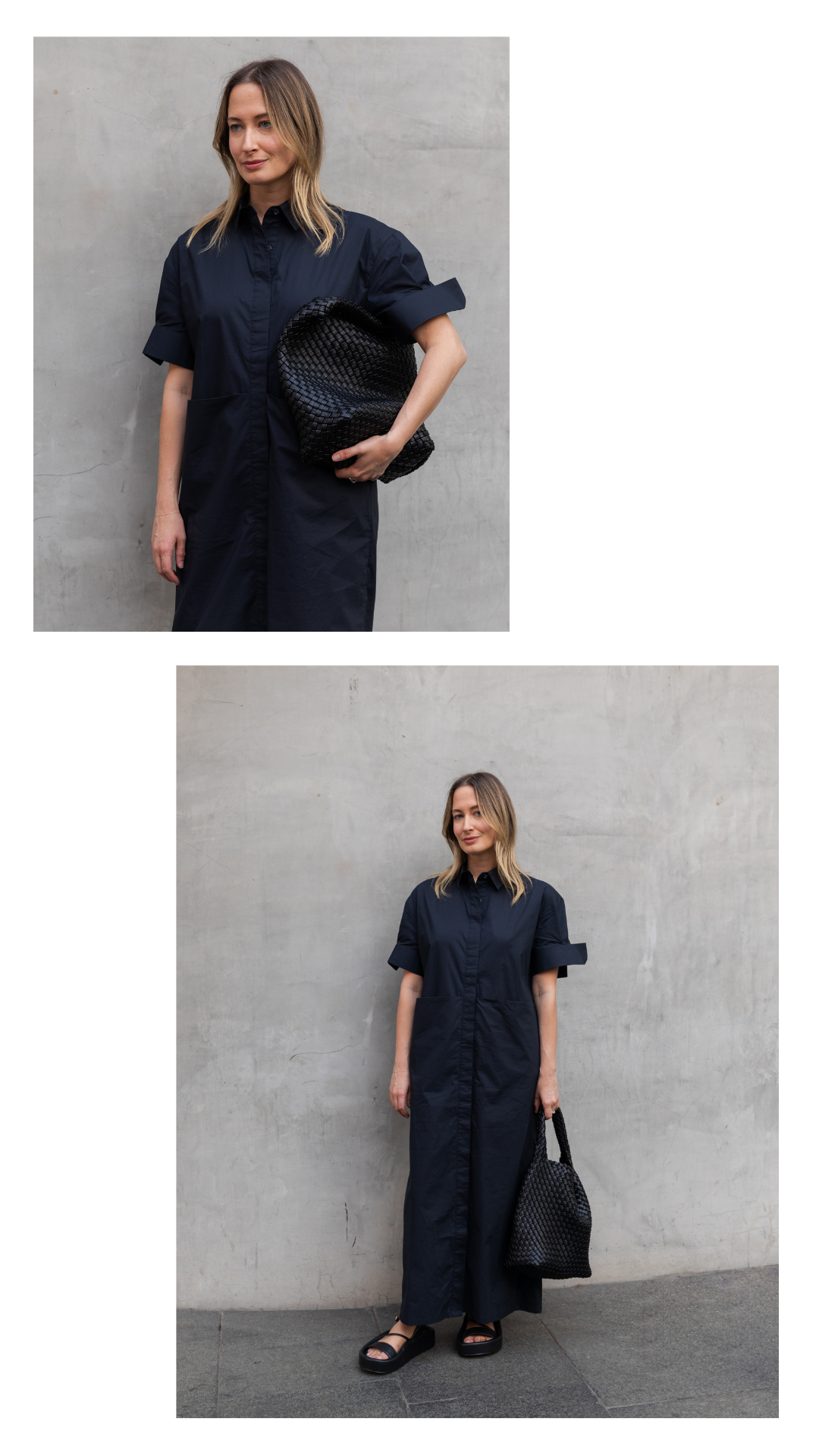 Dani wears the Missy Dress in Navy.